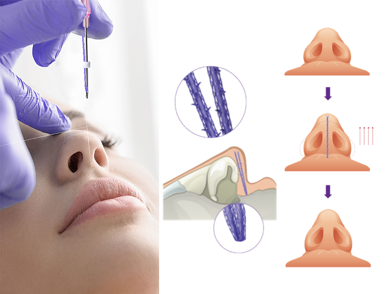 テスリフトノーズは、「第三世代のスレッド」として注目されている溶けるタイプの整鼻用の糸です。糸を挿入することで、鼻筋を高くする、鼻先の向きを変える、鼻先を小さくするといった効果が期待できます。