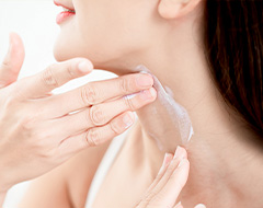 首の乾燥は、あらゆるシワの原因となるため、顔と同じように十分な保湿ケアを行なうことが首のシワの予防につながります。基本的には顔と同じ保湿ケアで問題ないので、顔の保湿ケアと一緒に、顔用の化粧水や乳液などを用いてしっかりと保湿しましょう。