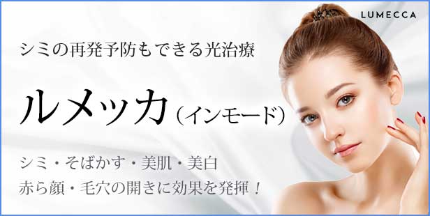 ルメッカは、しっかりした濃いシミ、薄いシミ、くすみ、そばかす、肌質改善などに適した新しい光治療(IPL)です。