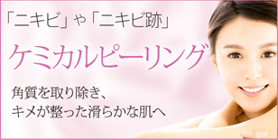 グリコール酸を用いたピーリングです。古い角質を取り除くことで、ターンオーバーを正常化し、素肌の再生を促します。繰り返しできている頑固なニキビにも効果を発揮します。