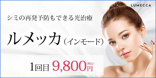 - 「LUMECCA(ルメッカ)」はイスラエル製の光治療(IPL)で、シミやそばかす、赤ら顔、毛穴の開きの改善に効果を発揮し、同時に皮膚の若返りが期待できます。