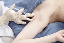 ボツリヌストキシン注射は、メスを使わない注射治療法です。過剰分泌されるワキ汗や手のひらの汗、足裏の汗を注射で抑える方法ですので、傷跡が残ることが無く、ダウンタイムもないのでお気軽に施術を受けることができます。