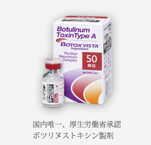 ボツリヌストキシン注射はボツリヌス菌から抽出された“ボツリヌストキシン”というタンパク質を注入する小顔注射です。(ボトックスという薬品名が通称になっています。)“ボツリヌストキシン”には筋肉の働きを制御する作用があるため、過度の噛み締めなどで、フェイスラインの筋肉が発達しエラが張ってしまっているようなタイプの方には非常に効果のある小顔注射です。 しかし、効果の持続期間は3ヶ月〜6ヶ月程度なので、継続して治療を受けることが必要とされます。また施術時の内出血や腫れを伴うリスクもあります。