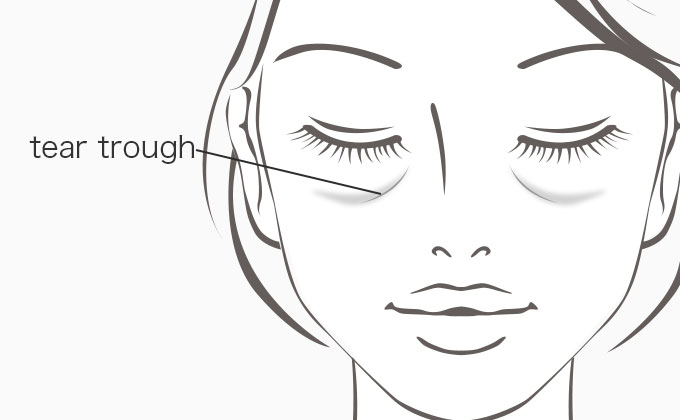 ところが年齢を重ねるとともに眼輪筋が衰えてくると目の周りの眼窩脂肪を支えきれなくなり、その脂肪が前に飛び出してしまいます。 さらに、膨らみの下にハの字や半円状の tear trough と呼ばれるくぼみがあることも多く、飛び出した眼窩脂肪のふくらみとくぼみのコントラストによってより一層凹凸が際立ち目の下のくまを形成してしまうのです。