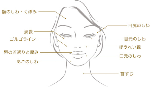 もともと人間の身体に存在しているナチュラルな成分だからこそ、アレルギーリスクが少なく、 積極的に美容整形治療の場でも使用され続けているのです。しわ・小じわ・ちりめんじわのメニュー