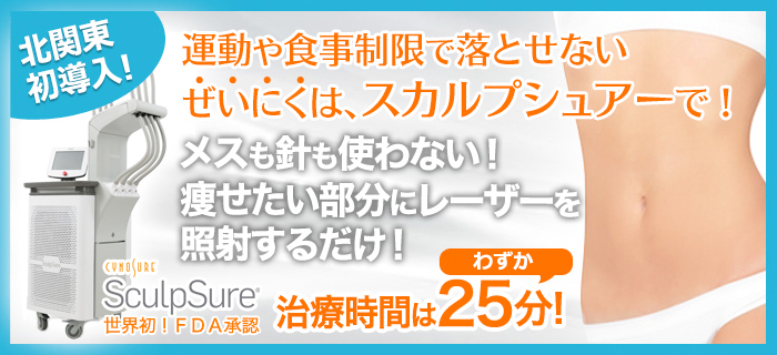 - 当院では、メスも針も使わない、切らない痩身治療「スカルプシェアー」、