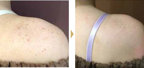 このお客様は、日焼けをしてしまったため、肩に細かいシミが広がってしまいました。 肩や背中に広がるシミを気にして、思うようなファッションやおしゃれが楽しめず、悩んでいる方は沢山いらっしゃいます。