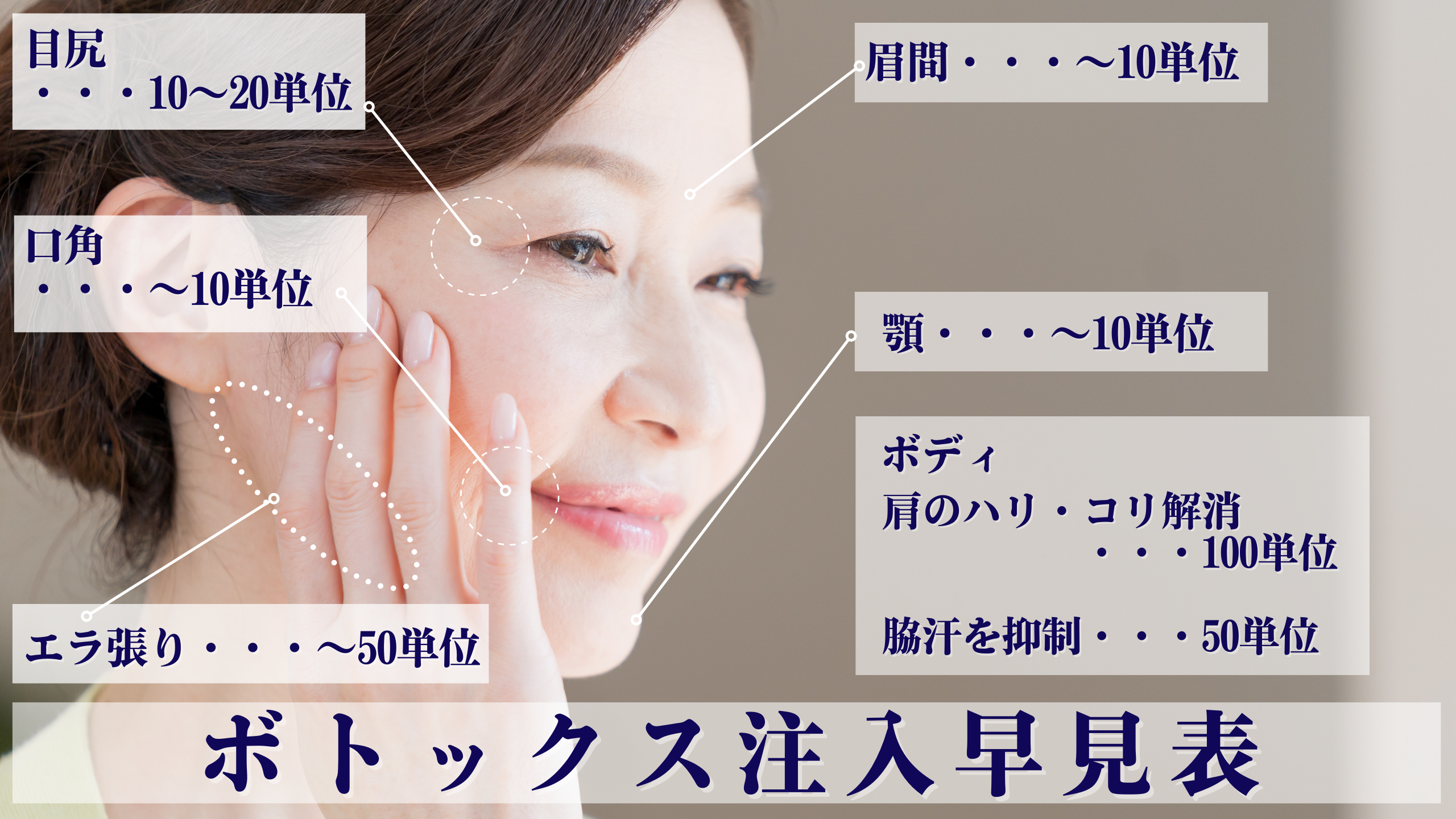 【しわ取り放題・ボツリヌストキシン注射で小顔効果や発汗抑制も!】ボツリヌストキシン注射打ち放題¥49,800