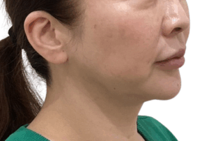 余分な皮下脂肪をカニューレ(細い金属の管)で吸い出す施術です。頬・あご下の2か所より吸引。1ヶ月後の症例となります。