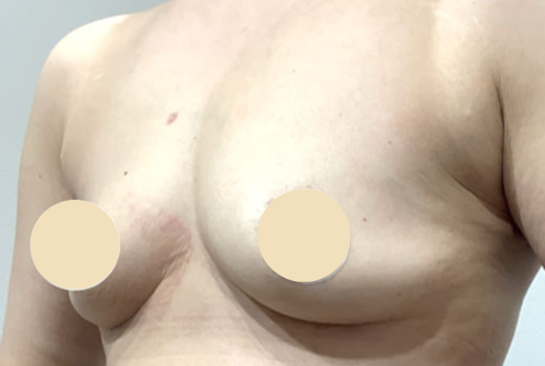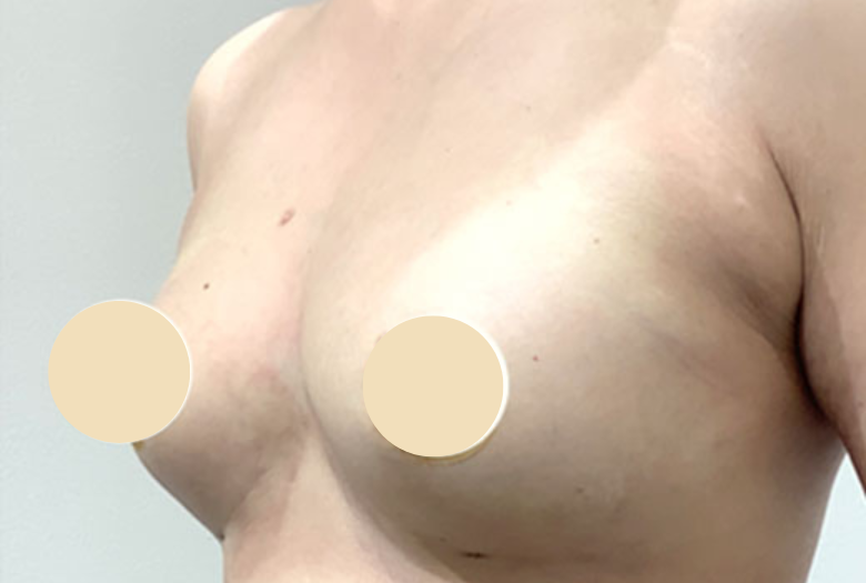 バストアップさせたい箇所にヒアルロン酸を注入する施術です。症例は100㏄の注入例です