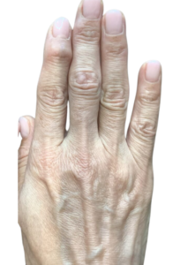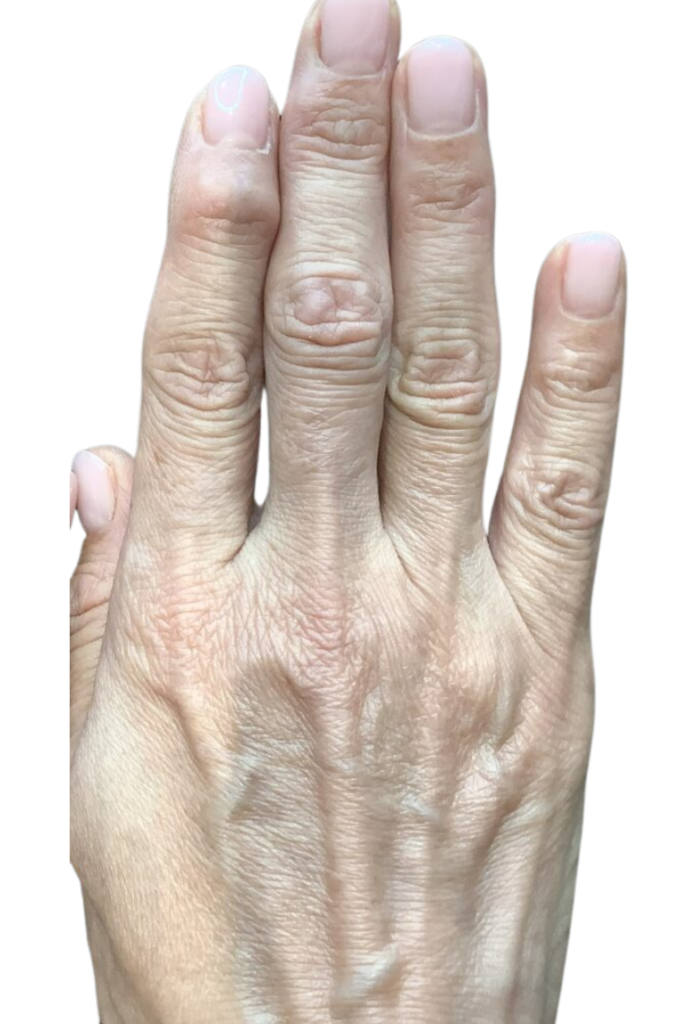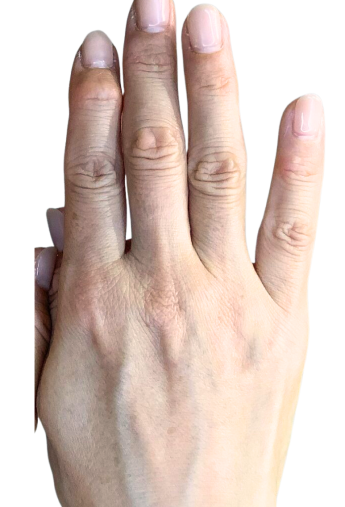 手の甲のしわを改善するためボライトXC2㏄を注入。手の甲の細かいシワをめだたなくさせ、ハリや潤いをもたらせます。全体的にふっくらとすることで、若々しい手元となります。