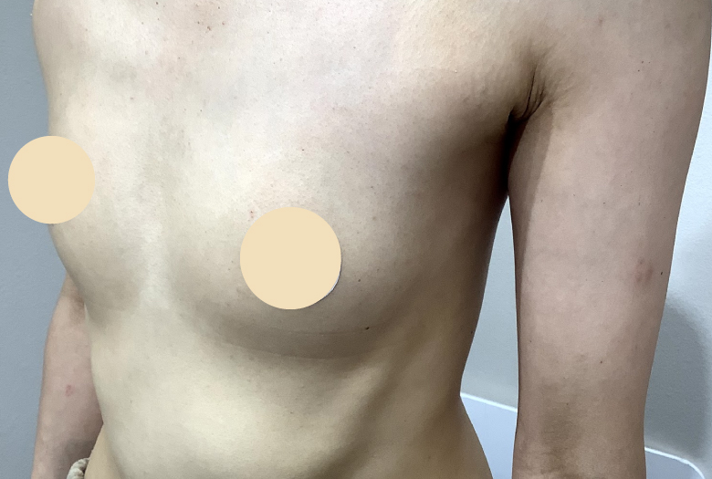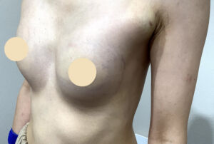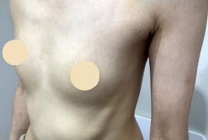 お体の脂肪を吸引し、より純度が高く・濃縮された脂肪(ピュアな脂肪)をバストに注入する豊胸術です。症例は太ももより脂肪を吸引。バストへ160㏄のピュアな脂肪を注入した症例です。