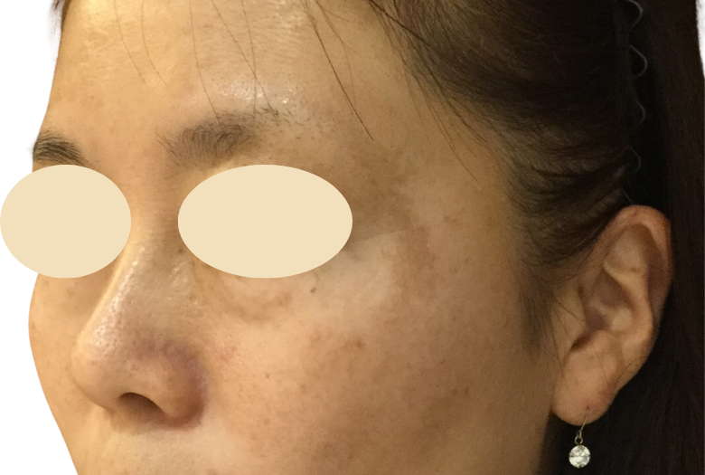 レーザートーニングとはレーザー光のピークパワーを高めたQスイッチモードでメラニン色素のみを選択的に破壊する治療です。肌全体のトーンがアップいたしました。