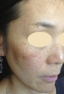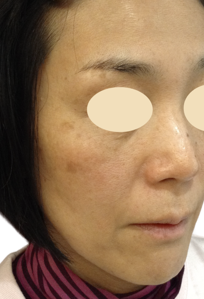 レーザートーニングを10回行った症例です。レーザートーニングとはレーザー光のピークパワーを高めたQスイッチモードでメラニン色素のみを選択的に破壊する治療です。