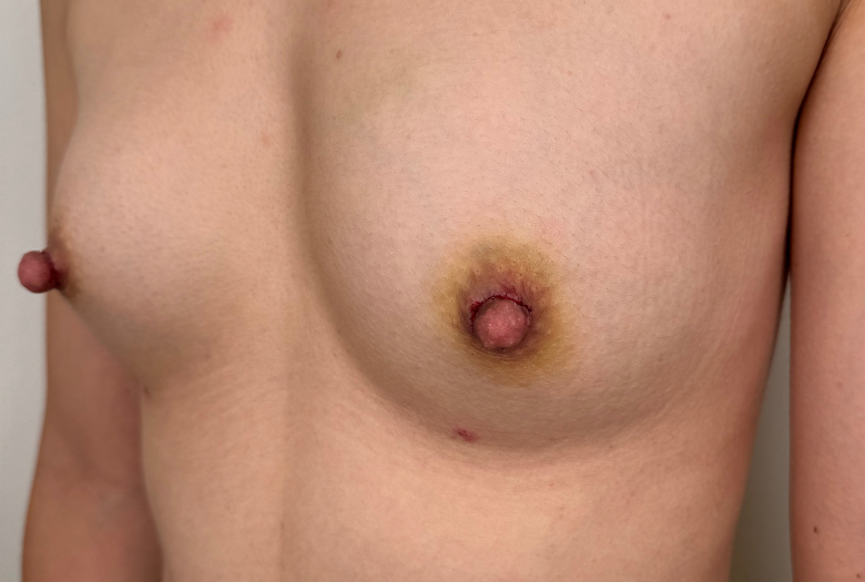 合わせて、乳頭の長さ・大きさを縮小する施術の組み合わせ治療も行いました。