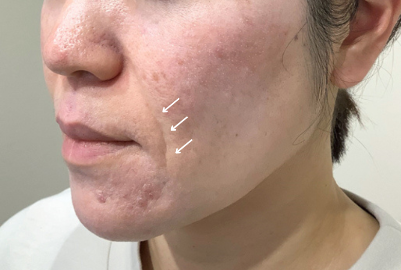 ヒアルロン酸を気になる部位に注入し、隆起させることで輪郭形成、シワやハリを改善。