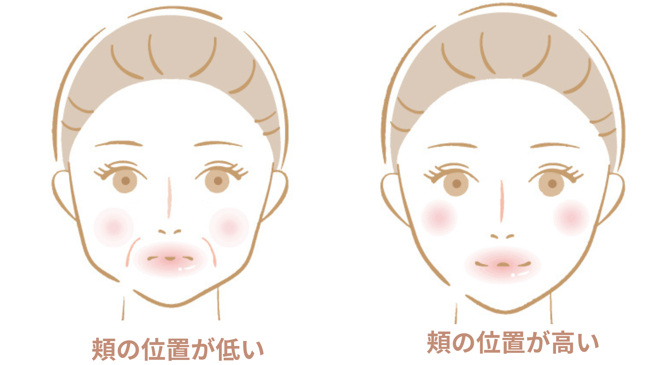 右側のイラストのように「頬の位置に高さを出す」ことでお顔の若々しさの印象が変わってくるのが分かります。