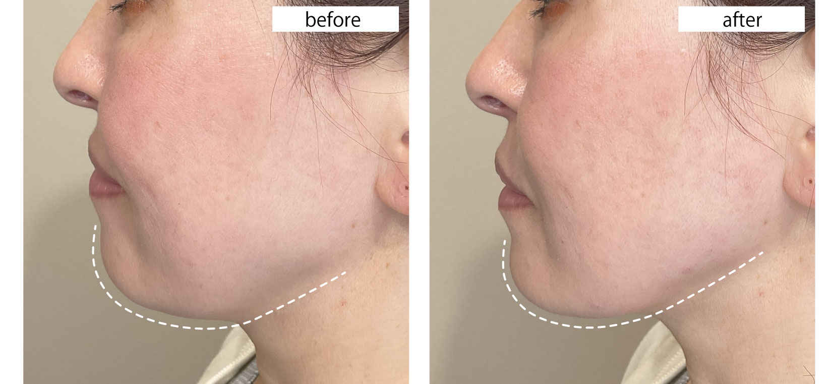 お顔下半分のたるみ・しわを気にされていた症例です。ボライトでお顔全体の水分量をあげることで小じわ等を改善。さらにお顔に潤いが保たれることでハリやツヤも出てきました。