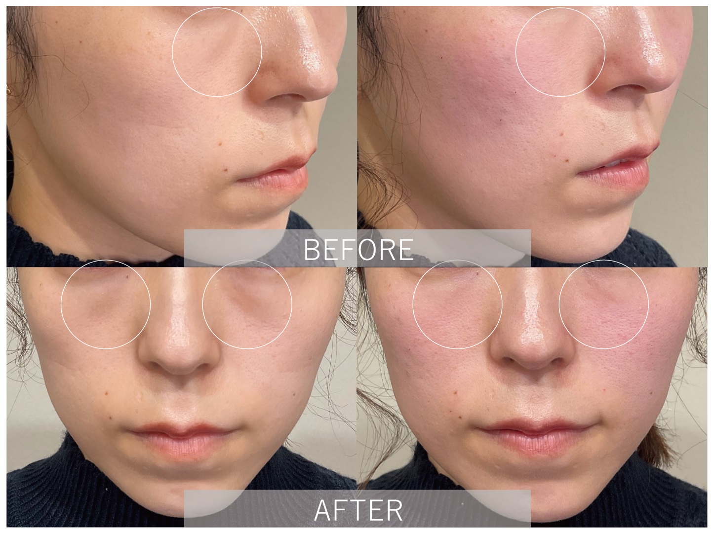 目元のくぼみやタルミで疲れて見える…そんな悩みには、ヒアルロン酸注入法をお勧めします。一度くぼみやたるみができてしまうと、セルフケアで改善させるのは難しく、美容医療をお考えになる方が多いと思います。ヒアルロン酸注入なら、短時間の治療で即効性があり、リスクも少ないので、気軽にできる施術として多くの女性に支持されています。 また、ヒアルロン酸注入は「注入する技術」によって効果の現れ方が変わってきます。当院では目もとなど凸凹になりやすい部位も、経験豊富なドクターが丁寧に施術を行っています。\目元のハリ改善/