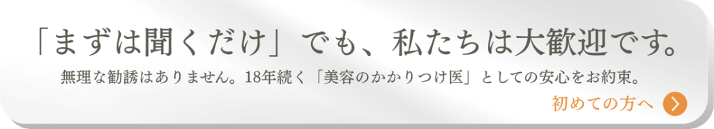 当院は、お悩みの相談だけでも承っております。電話やメールにてお客様からの相談に丁寧にお応えし、 治療を始めたい方にはカウンセリングのご案内、治療期間中はお客様のフォローはもちろんのこと、 必要な方にはインナーケア・ホームケアのご紹介をしております。