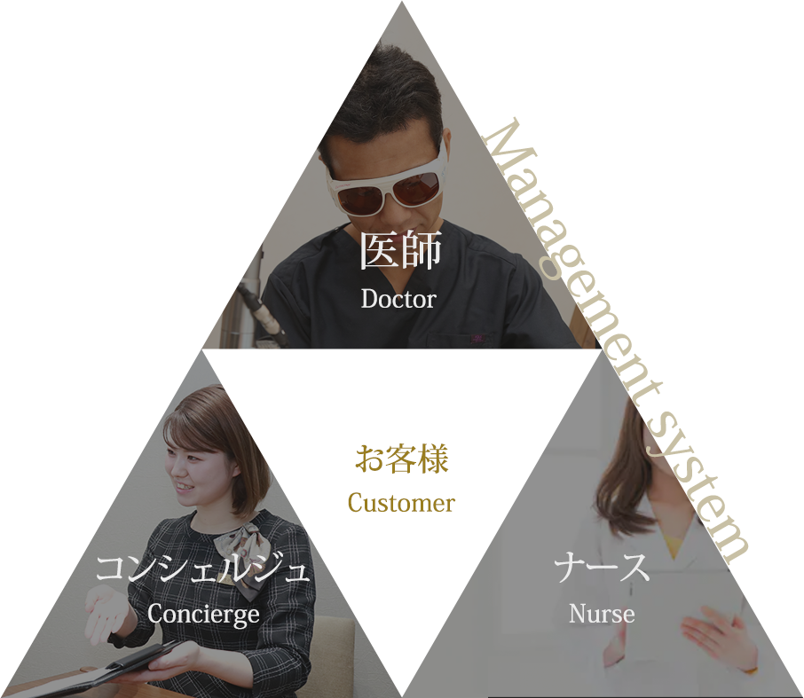 自分のライフスタイルを変える事は難しいと思います。お一人お一人のライフスタイルに合わせた最適な治療を提案する為にシンシアではドクター、ナース、コンシェルジュ、三位一体の管理体制を敷いています。