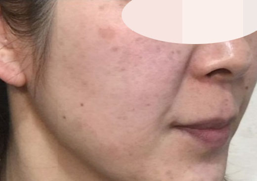 ポイントの濃くはっきりとしたシミを取ることが可能です。患部周辺の正常組織へのダメージを最小限にとどめ、メラニン色素を破壊します。