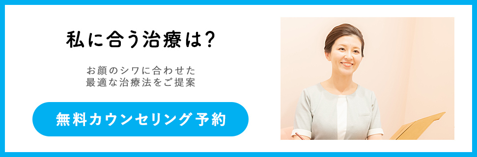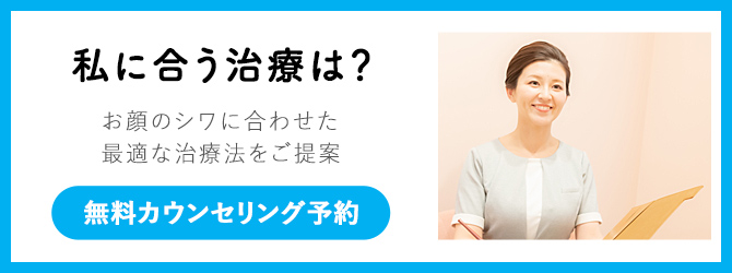 肌のハリ・弾力が落ちて表情の癖が戻らなくなり、シワとして残ってしまった状態です。