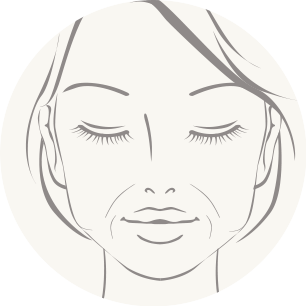 目のまわりのたるみは、活力のない疲れた印象を与えます。上下のまぶたの余分な「たるみ」をなくすことで若々しく生き生きとした印象へと導きます。