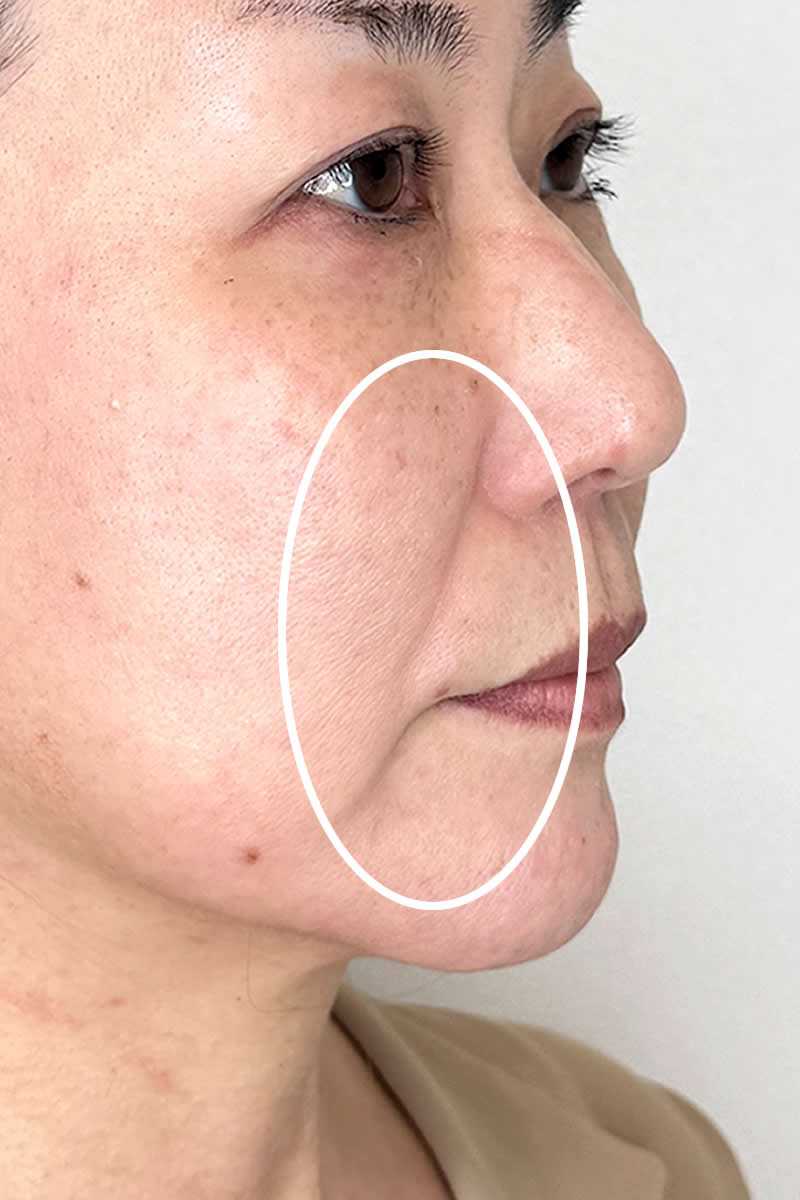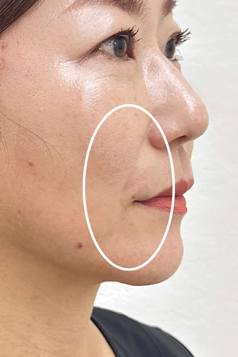 フェイスラインの「たるみ」は、老け顔の象徴です。二重アゴや横顔のアゴのラインなどすっきりシャープなフェイスラインを取り戻すことで若々しい印象に変わります。