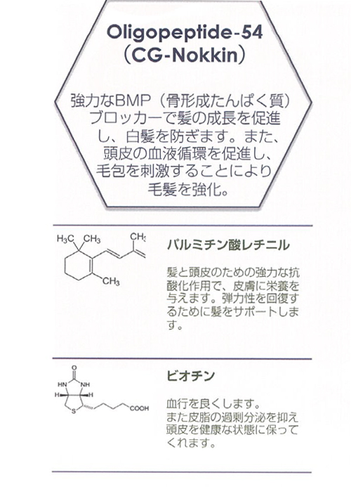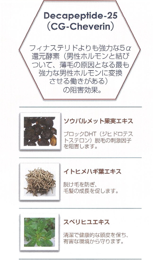 3つの特許成分と7つの有効成分で抜け毛予防と毛の再生