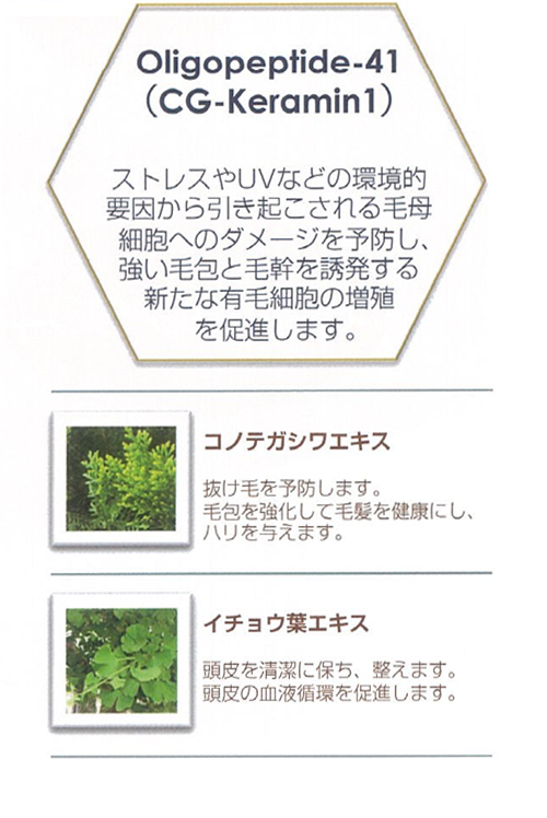 活性成分がふっくらと、つやのある髪を育てます。