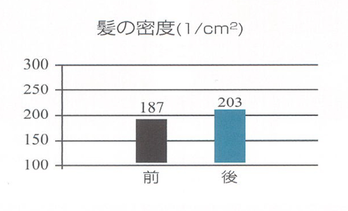 peloBarumを使用すると髪の本数、密度、太さの数値が上がることが期待できます。