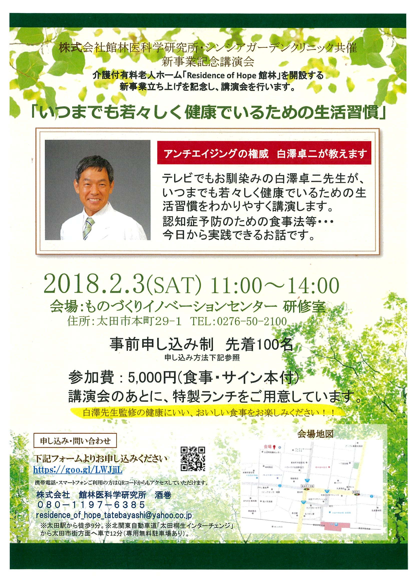あの白澤卓二先生による◆いつまでも若々しく健康でいるための生活習慣◆2月3日開催