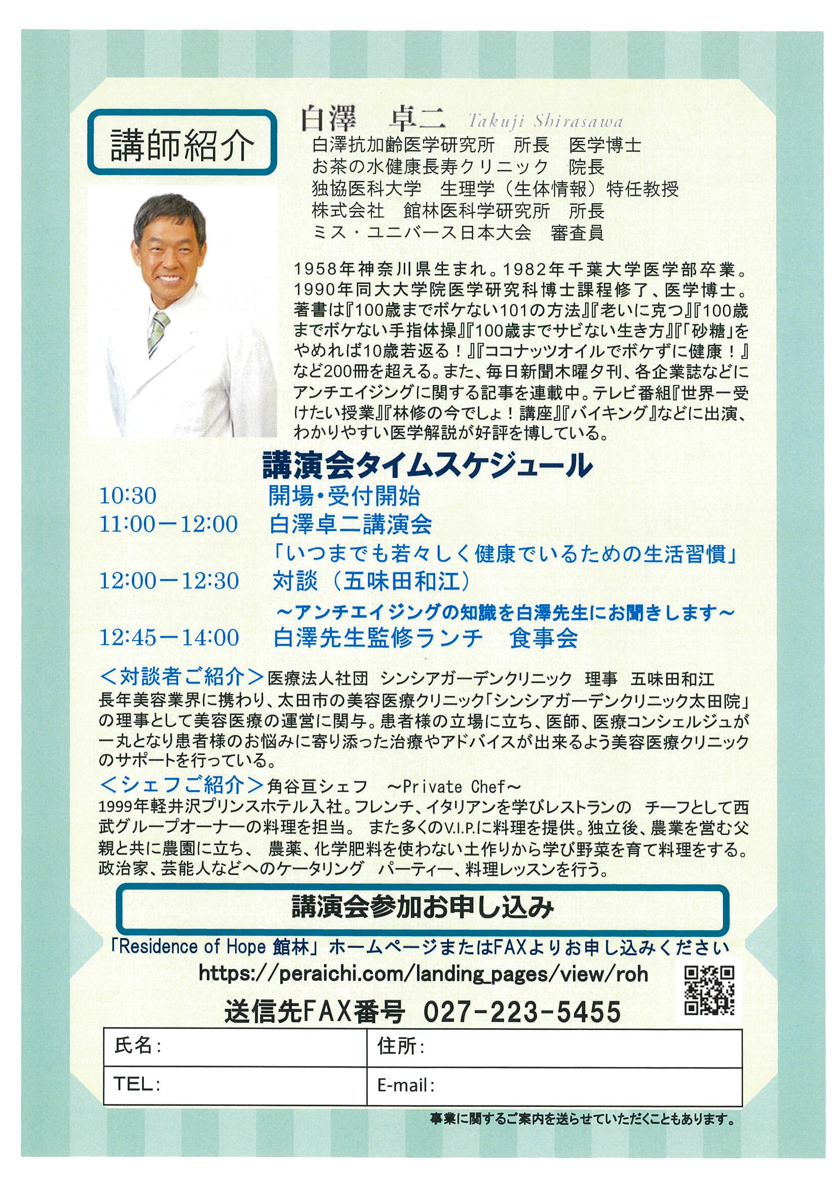 是非、アンチエイジングが気になる方はご参加下さい(参加費5000円)。