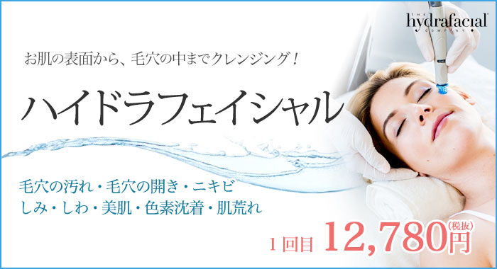 ハイドラフェイシャルは水の力で古い角質や皮脂を取り除き、保湿をしながら毛穴の奥までピーリングする施術です。さらに美肌成分を浸透させるのでしっとりとツヤ肌が完成します。