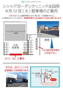 ◆重要◆4月12日(火) 当院駐車場についてのご案内