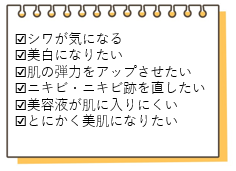 肌荒れ、にきびくすみ小じわ、ほうれい線などのアンチエイジングのお悩み全般毛穴