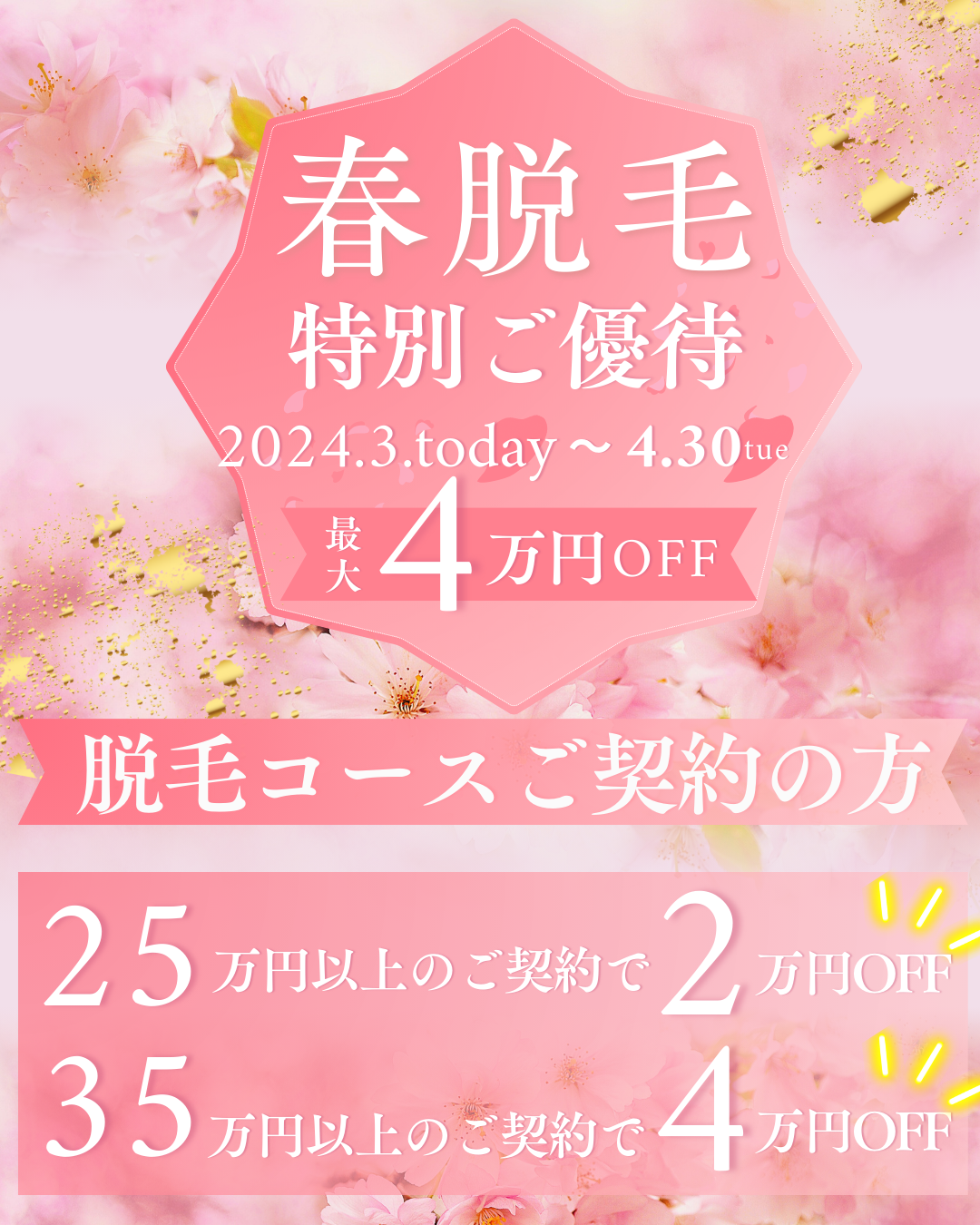ただいま、春脱毛特別ご優待をご利用された場合の脱毛プランを実施中