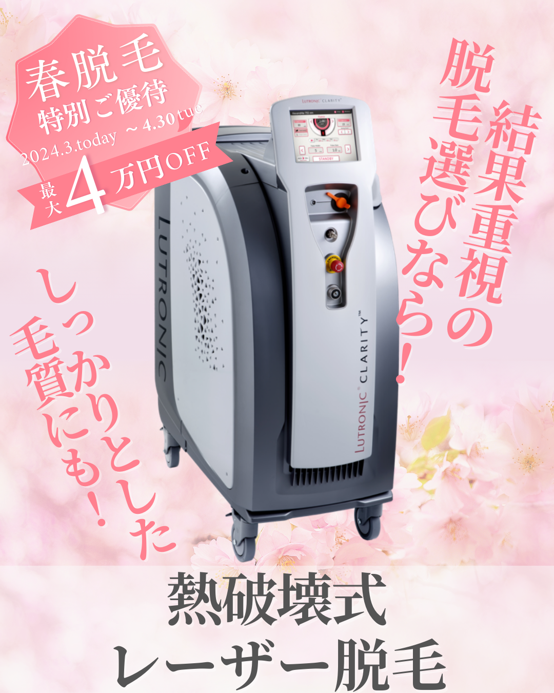 【最大4万円オフ】今話題の熱破壊式医療脱毛が人気【春の全身脱毛】