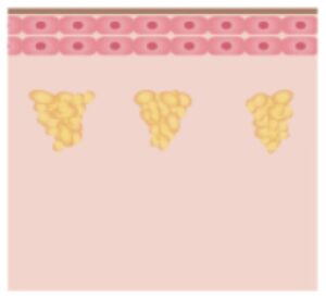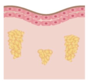 <凹凸がでてしまう例>中央部のみから脂肪を取り除くと、皮膚表面が