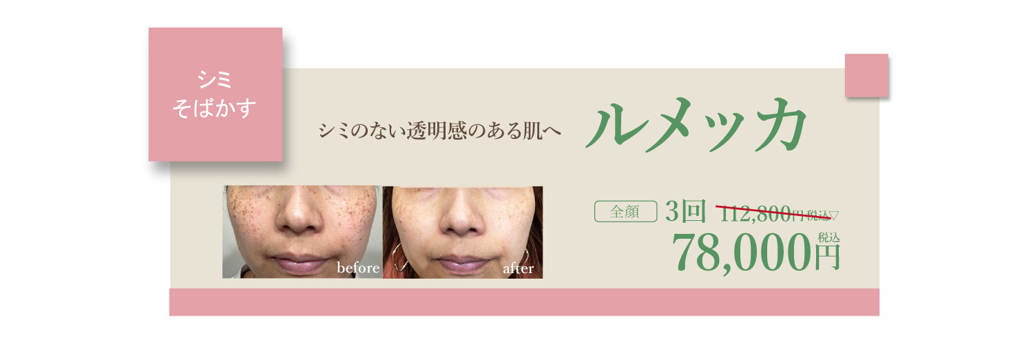 🧐ルメッカは、しっかりした濃いシミ、薄いシミ、くすみ、そばかす、肌質改善などに適した新しい光治療(IPL)です。