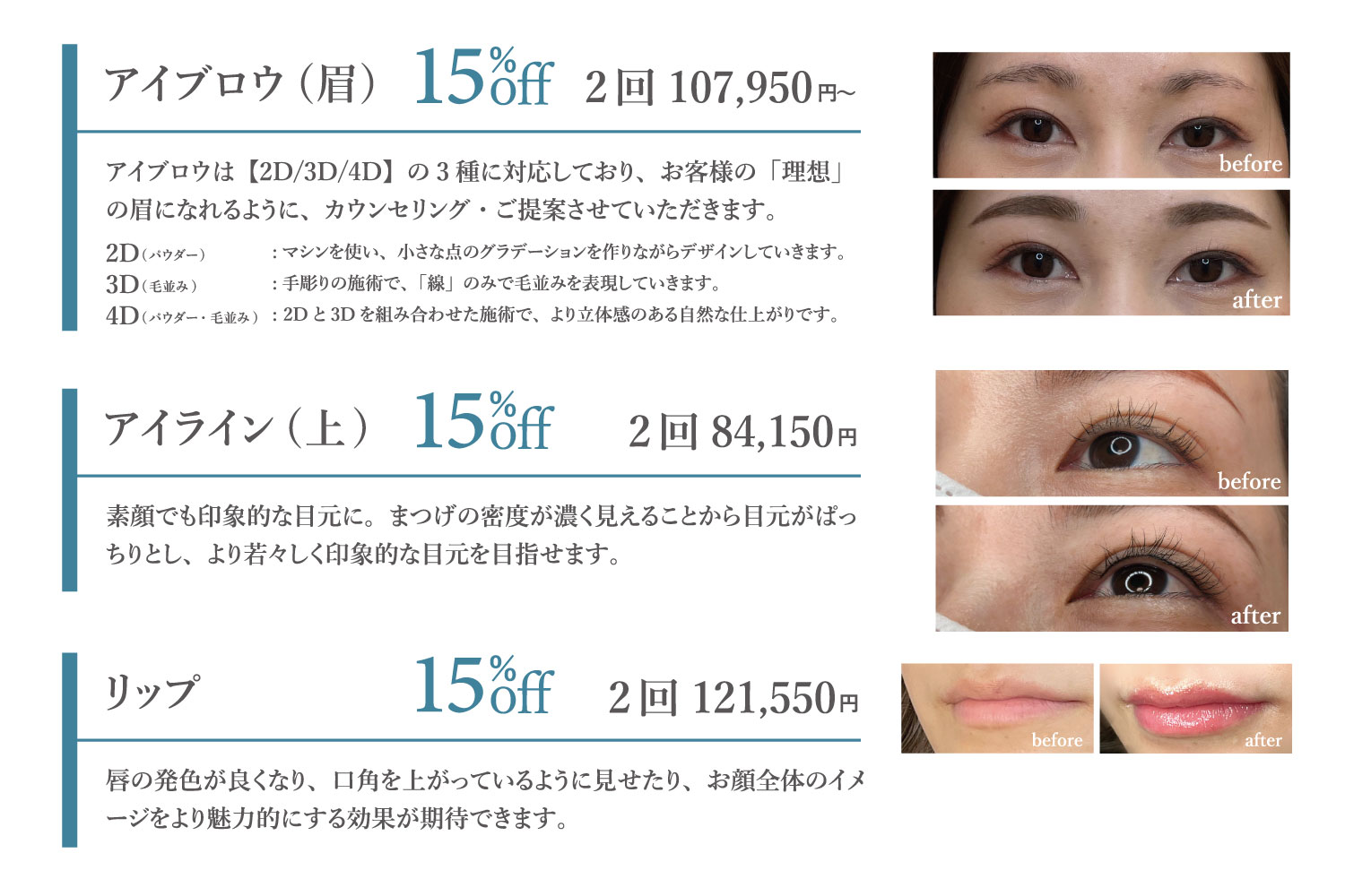 人気!アートメイク〈眉|アイライン|リップ〉2回セットモニター価格|高崎市・太田市の美容クリニック