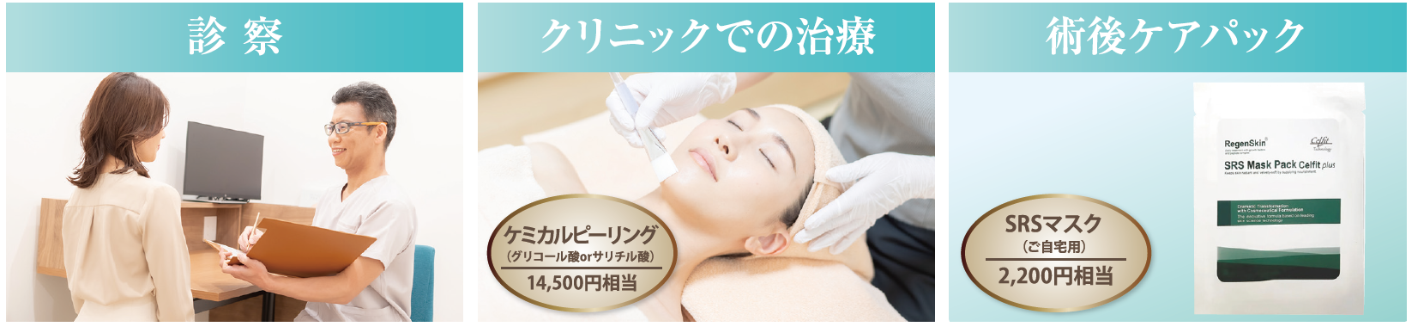 古い角質をオフし皮膚の代謝を正常にし肌表面を整えるケミカルピーリング治療を行います。