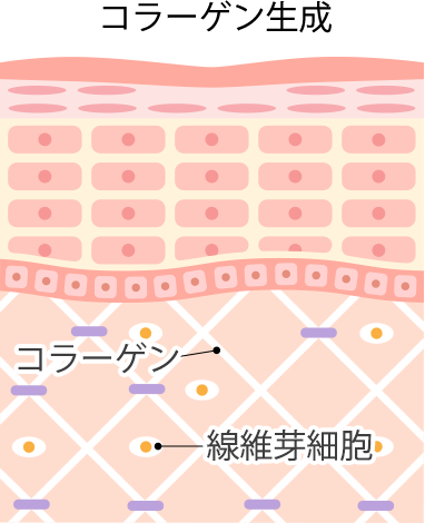 肌の創傷治癒力により線維芽細胞が活性化、コラーゲン生成を促進。