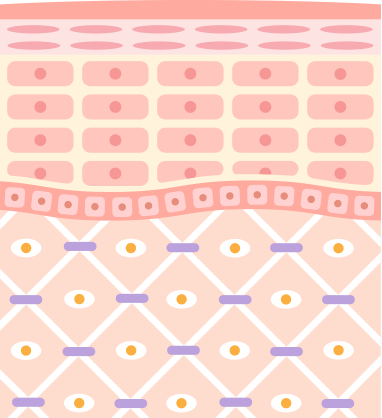 - 細胞レベルにおいて、繊維芽細胞の活動を惹起し、数週間から数か月にわたり皮膚状態を改善します。