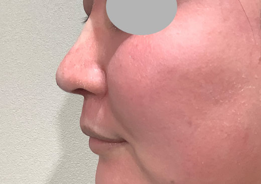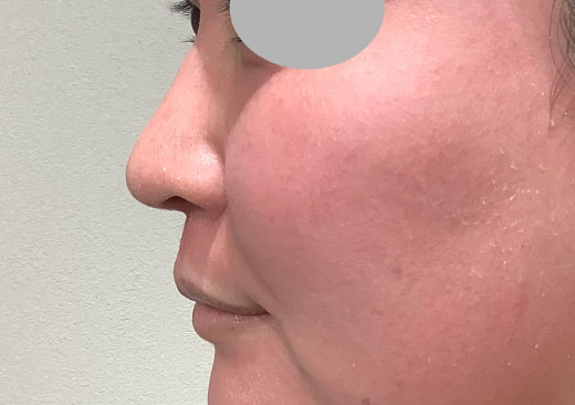 - 術後の腫れはほとんどありません。3日程度、鈍痛がある場合があります。 術後すぐは鼻先に注射跡がありますが、2日くらいでお化粧で隠れる程度になります。