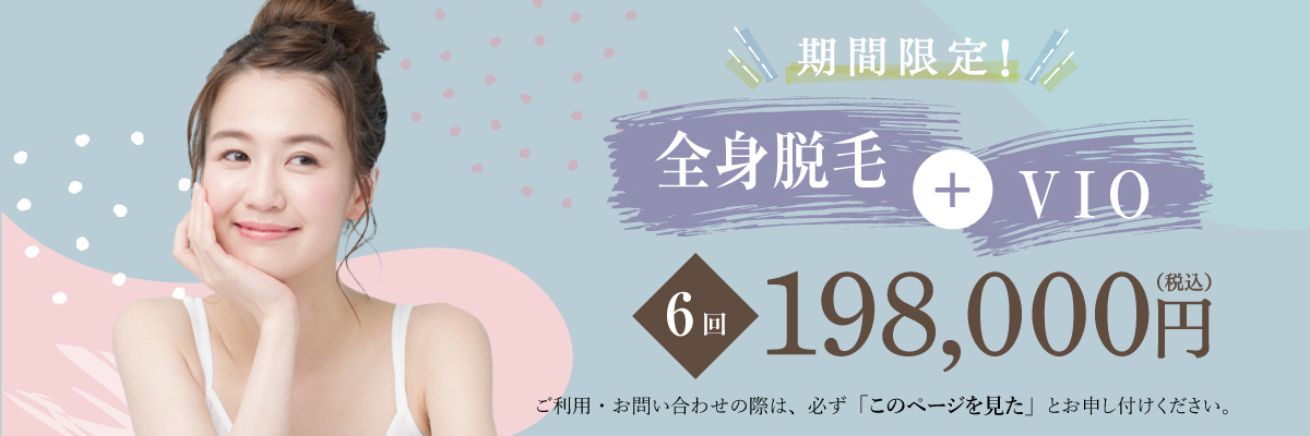 | 全身脱毛+VIO(お顔&うなじ 除く) | ¥188,000 | ¥330,000 | |