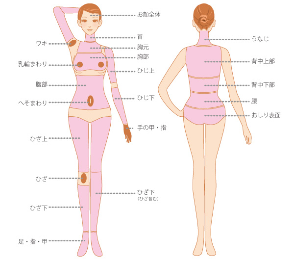 身体の部位別脱毛の施術料金