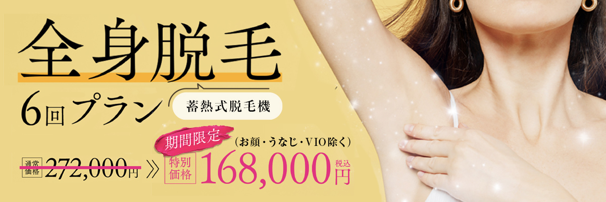 | 全身脱毛(VIO&お顔&うなじ 除く) | ¥148,000 | ¥272,000 | |
