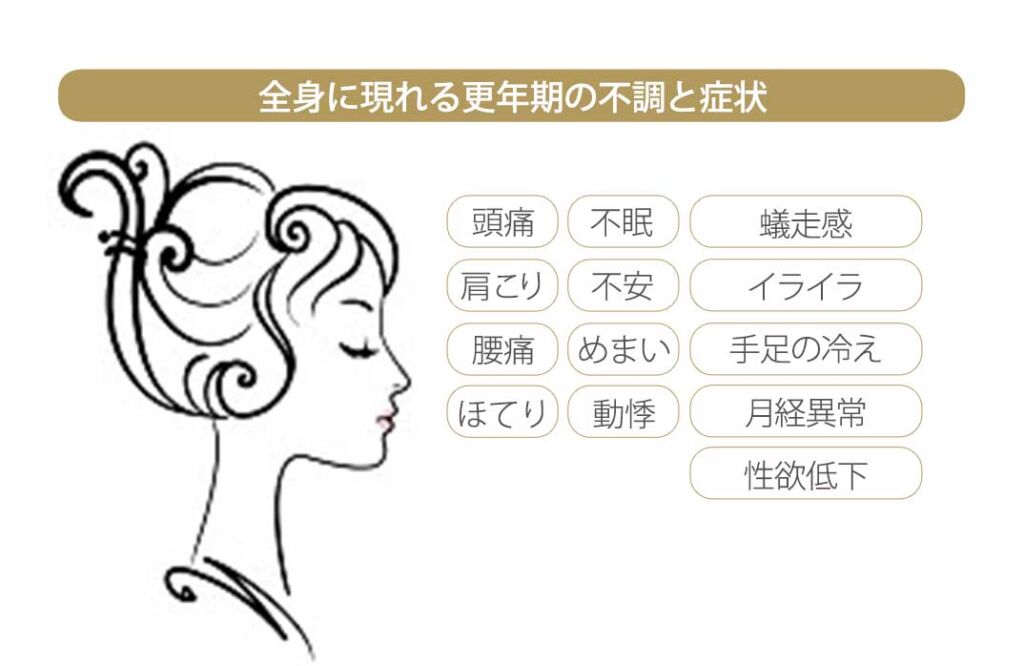 更年期不定愁訴症候群、更年期不正出血、萎縮性膣炎、冷え性 など